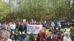 71 Gefangene aus zwei Gefängnissen in Remscheid und Wuppertal wurden auf Befehl des Generalfeldmarschalls Modell noch in den letzten Kriegstagen des Zweiten Weltkriegs von der Gestapo ermordet. An sie erinnert eine jährliche Gedenkfeier am Mahnmal Wenzelnberg. In diesem Jahr, am 14. April, sprach Gisela Blomberg für die VVN-BdA auf dieser Gedenkfeier. Sie betonte: Zum Antifaschismus gehöre der Kampf gegen jegliche Kriegstreiberei. Blomberg forderte Waffenstillstand und Verhandlungen in den Kriegen in der Ukraine und in Gaza. Wir dokumentieren ihre Rede in voller Länge:
